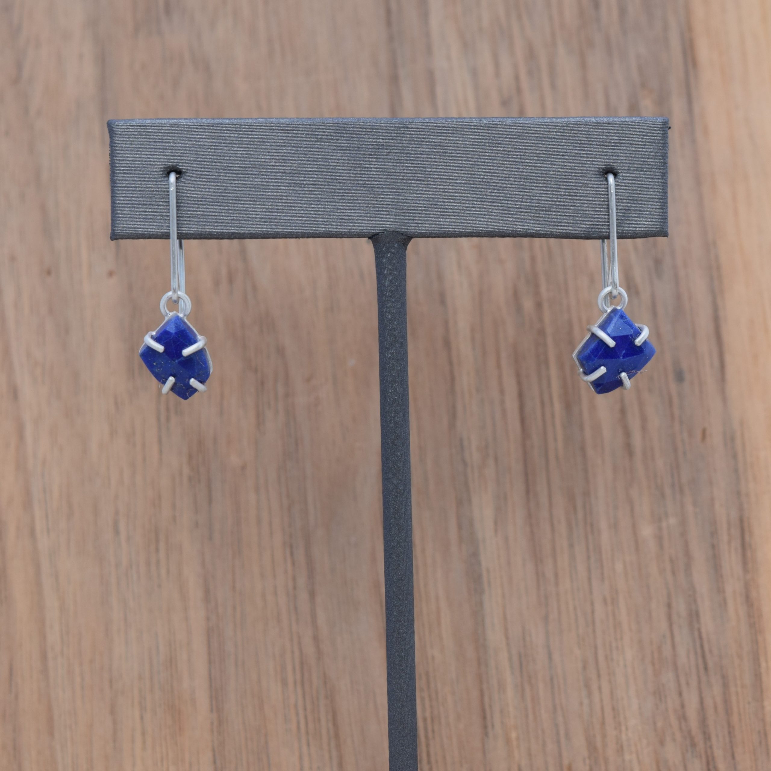 Each pair of these earrings features a unique pair of gemstones. Hanging from sterling silver ear hooks, the stones are simply prong set, also in sterling silver, to allow the gemstones to take center focus.